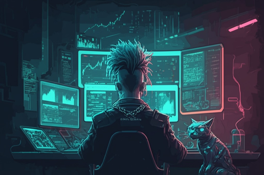 A CyberIdle vignette. El Money's trading AIs say yes. His gut says wait. In this partnership, who gets the final vote?