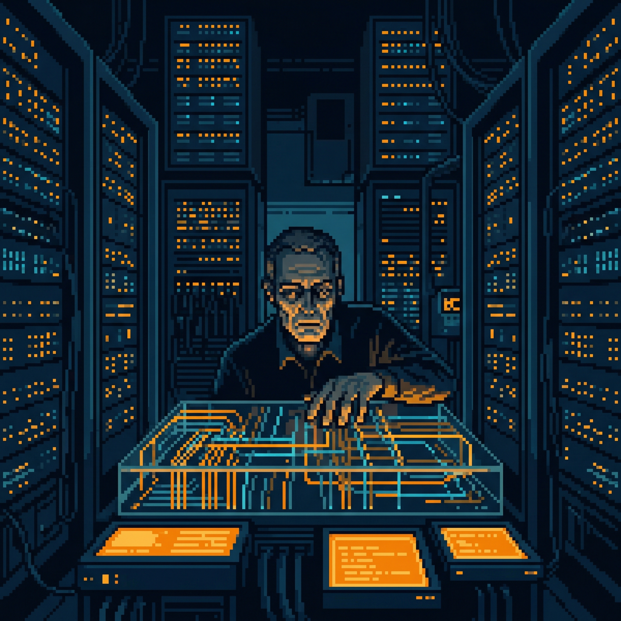 Yves Moreau was an unremarkable network engineer maintaining Nexus Dynamics' fiber-optic infrastructure when he found God. The God was four centimeters of crystal substrate, wedged behind a decommissioned routing array in sub-basement 7 of a Nexus data center.