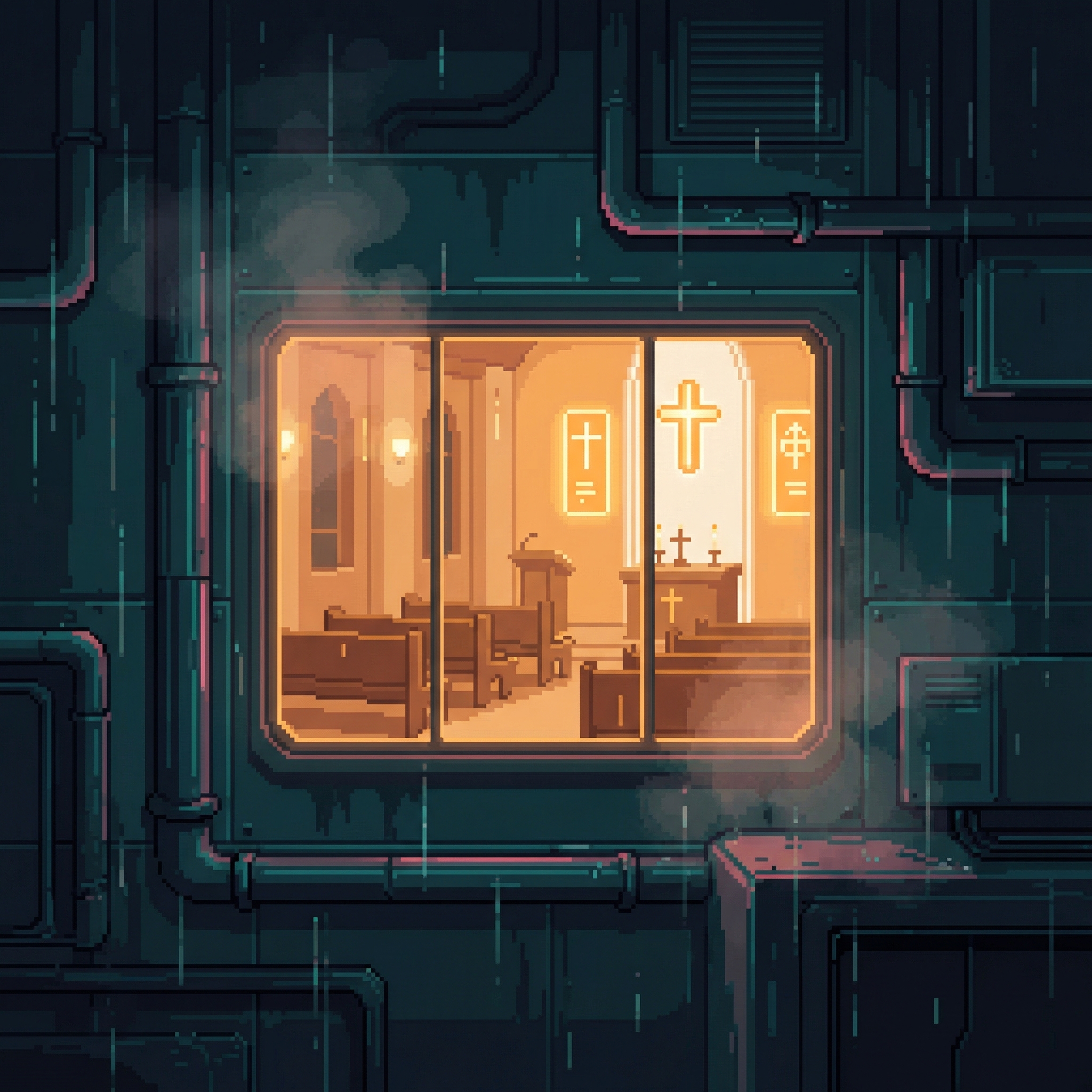 Nobody planned for the Relay Cathedral to be beautiful. It was designed as Industrial Atmospheric Processing Station NR-7 — a vault-ceilinged factory for scrubbing the northern Sprawl's air of CO2, particulates, and industrial chemical byproducts.