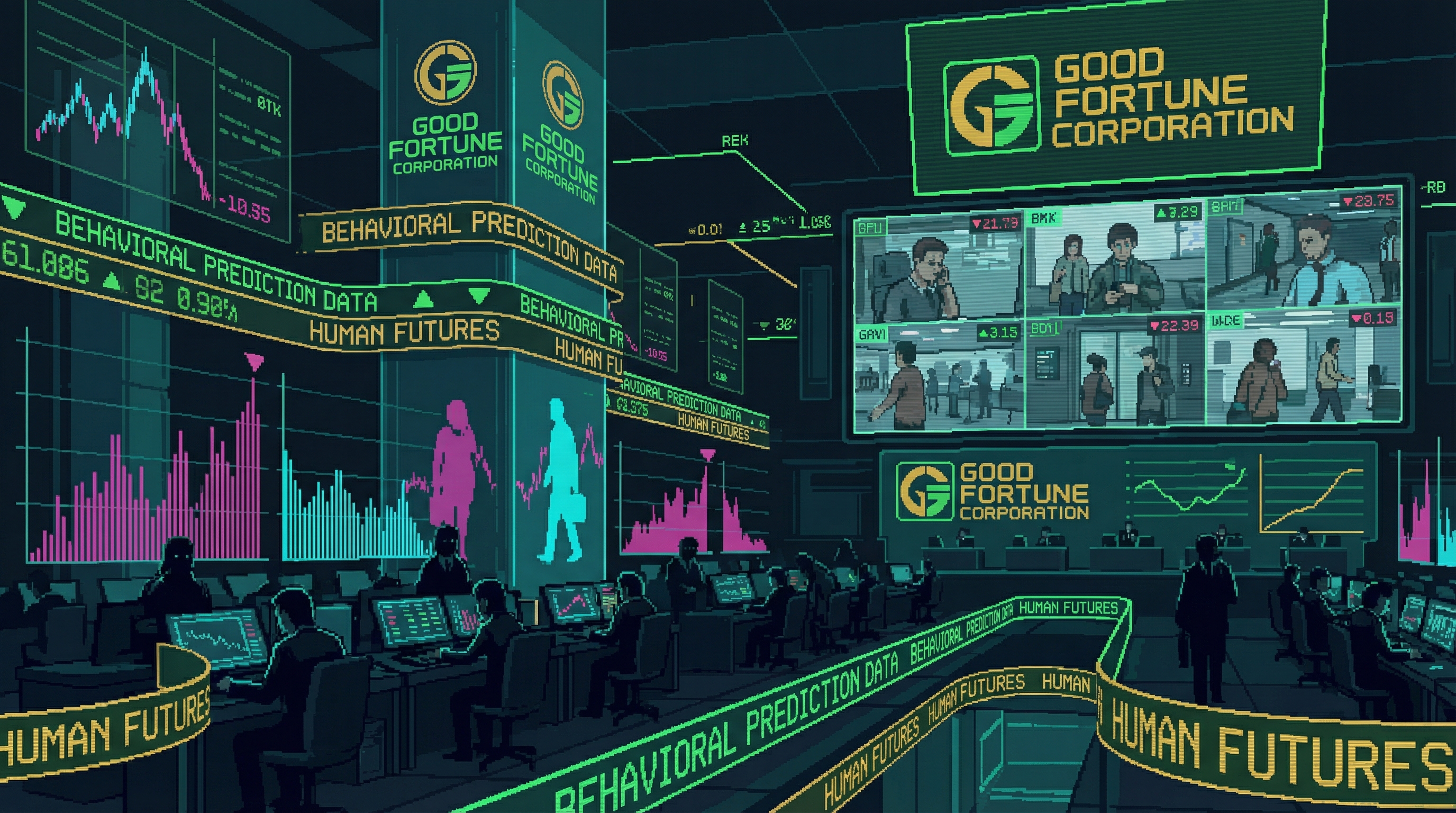 In the Sprawl of 2184, your behavior is modeled, predicted, and monetized before you've finished deciding what to do. BehaviorExchange trades your future.