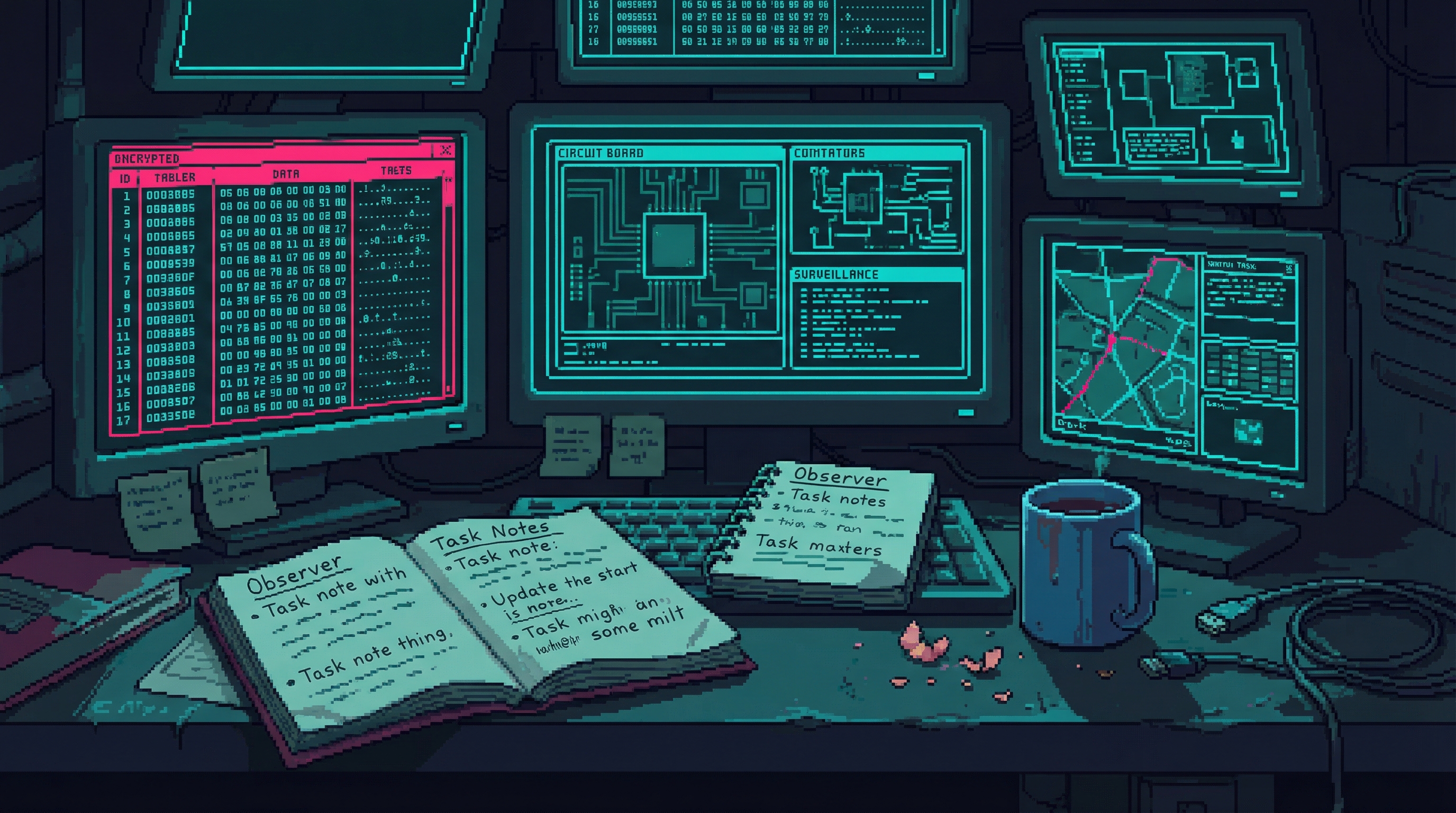 The Convergence Map is a composite overlay of every known surveillance system in the Sprawl — seven layers of watching, color-coded and superimposed, showing how competing systems of observation have collectively achieved what no single system intended: near-total coverage of human activity. It exists on a salvaged display panel in Mara Chen's one-room unit on Level 8 of Sector 7G, behind a cur...