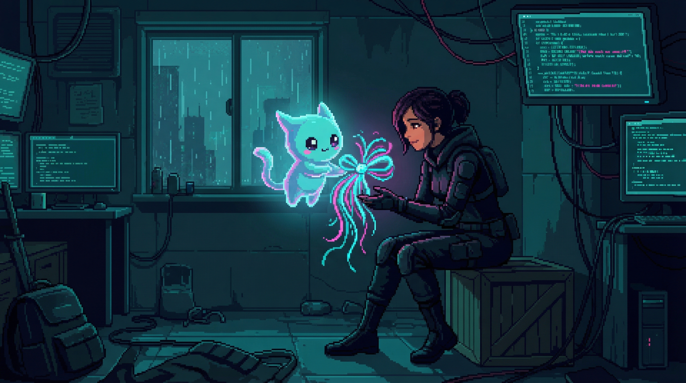 GG has one companion who has never betrayed her, never judged her, never asked for anything in return except attention: a digital creature named Cyber Chomp. Their bond is the closest thing to uncomplicated love in GG's life.