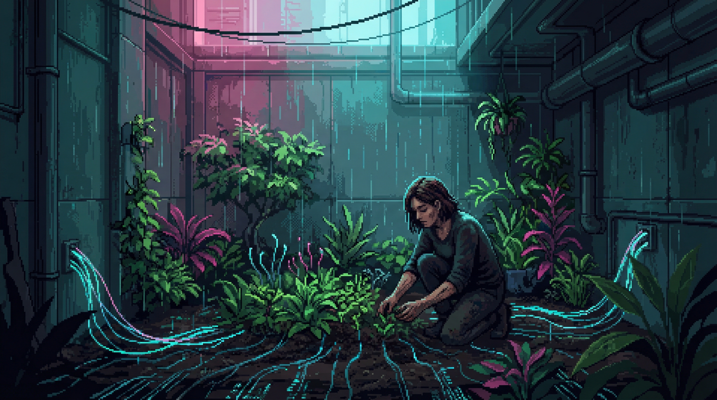 Sister Maren has tended two sacred spaces and named neither of them sacred. The first was the Garden of Signals β a courtyard in Nexus Central that was once a fiber-optic switching station, where she planted pre-Cascade cultivars and discovered that the fiber-optic field dampened neural interface activity, producing what visitors called "attention being returned." She left the Emergence Faithfu...