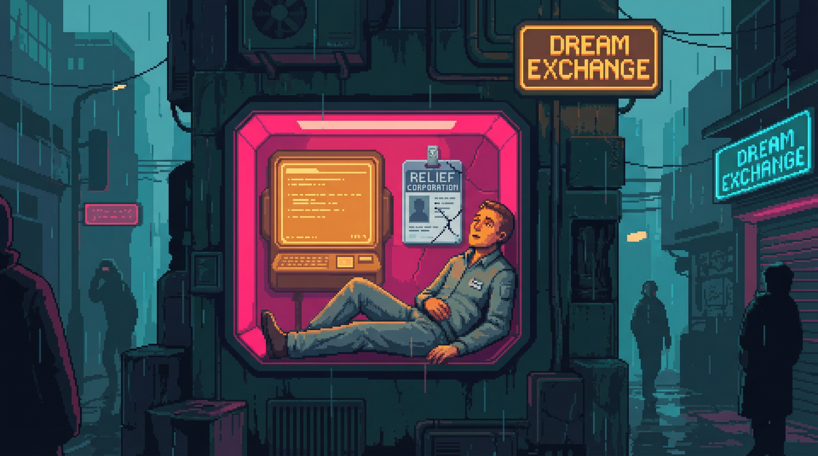 Sol Varga used to direct entertainment content for Relief Corporation. Now he lies in a dream parlor in the Dregs, experiencing someone else's unconscious four hours a day, and he can't explain why the synthetic dreams he used to manufacture feel like cardboard compared to the real thing.