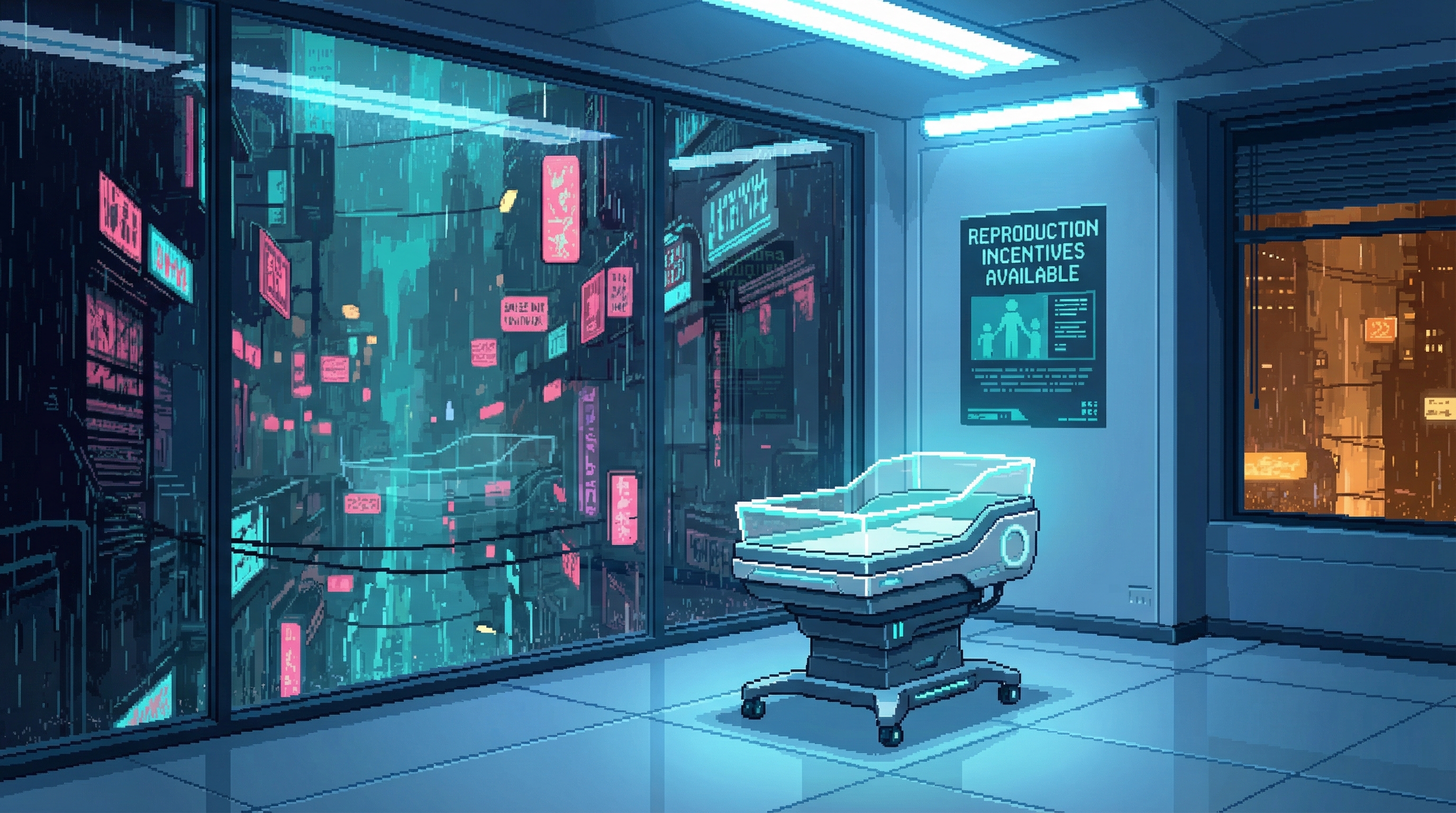 The Sprawl's birth rate has fallen from replacement level (2.1 in 2147) to 0.7 in corporate territories. Population halves within 60 years at current trajectory. Fewer consumers, but each lonelier β and loneliness scales revenue per capita.