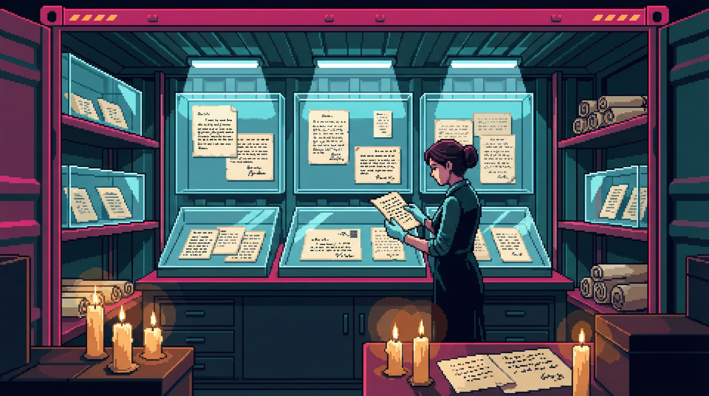 In a basement workshop in the Undervolt — three junctions east of the Speaking Wall, close enough to feel the Grid's 72-bpm hum in the table legs — a woman called the Archivist maintains the Sprawl's most unusual collection: memories nobody wanted. The Memory Pavilion sells extraordinary experiences.
