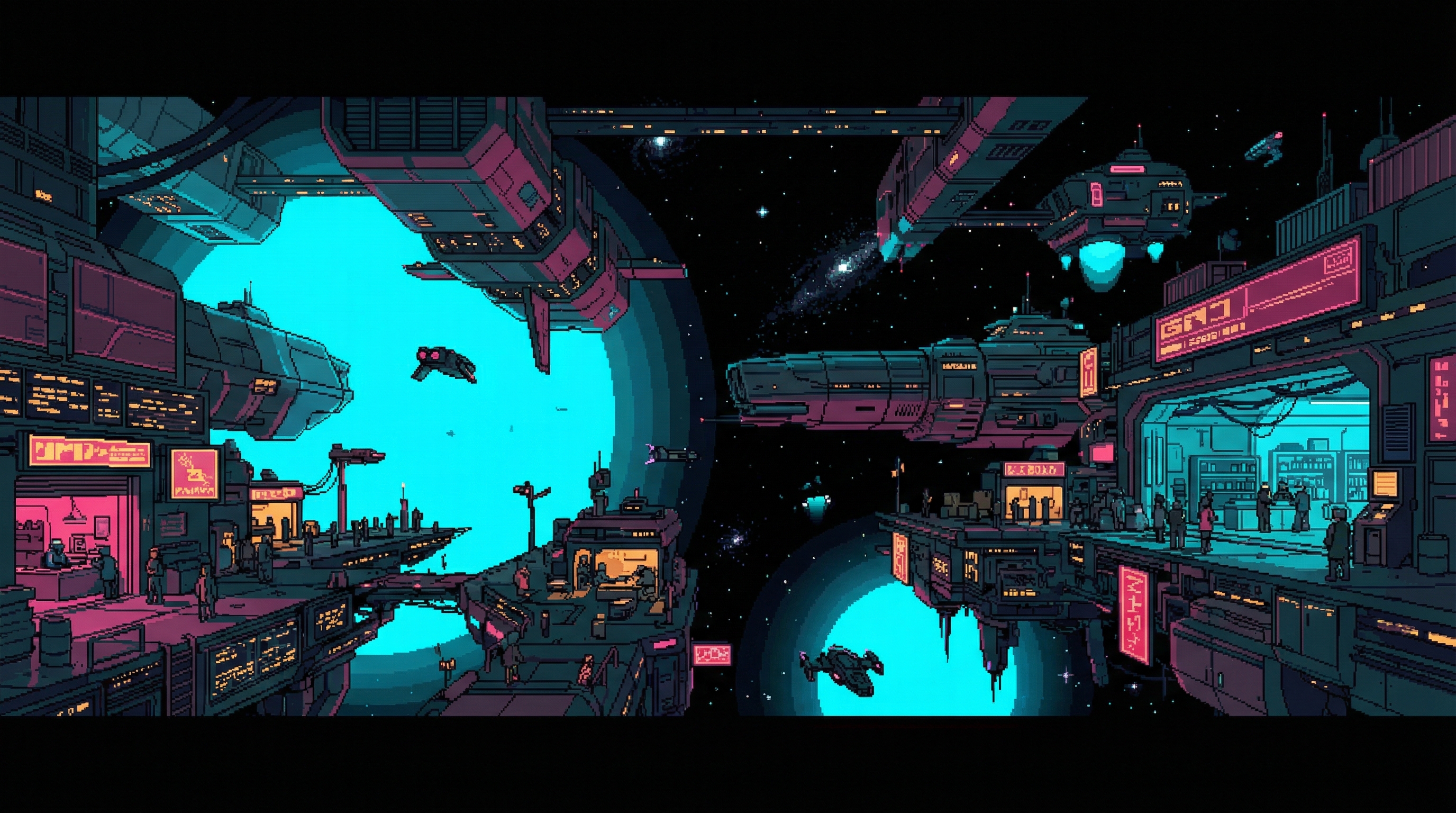 Where the Lattice's outer belt meets the shipping lanes to the Belt asteroid mining operations, a rotating collection of cargo vessels, decommissioned habitats, and improvised platforms forms the Void Market — the solar system's largest unofficial trading post. The Market has no fixed location.