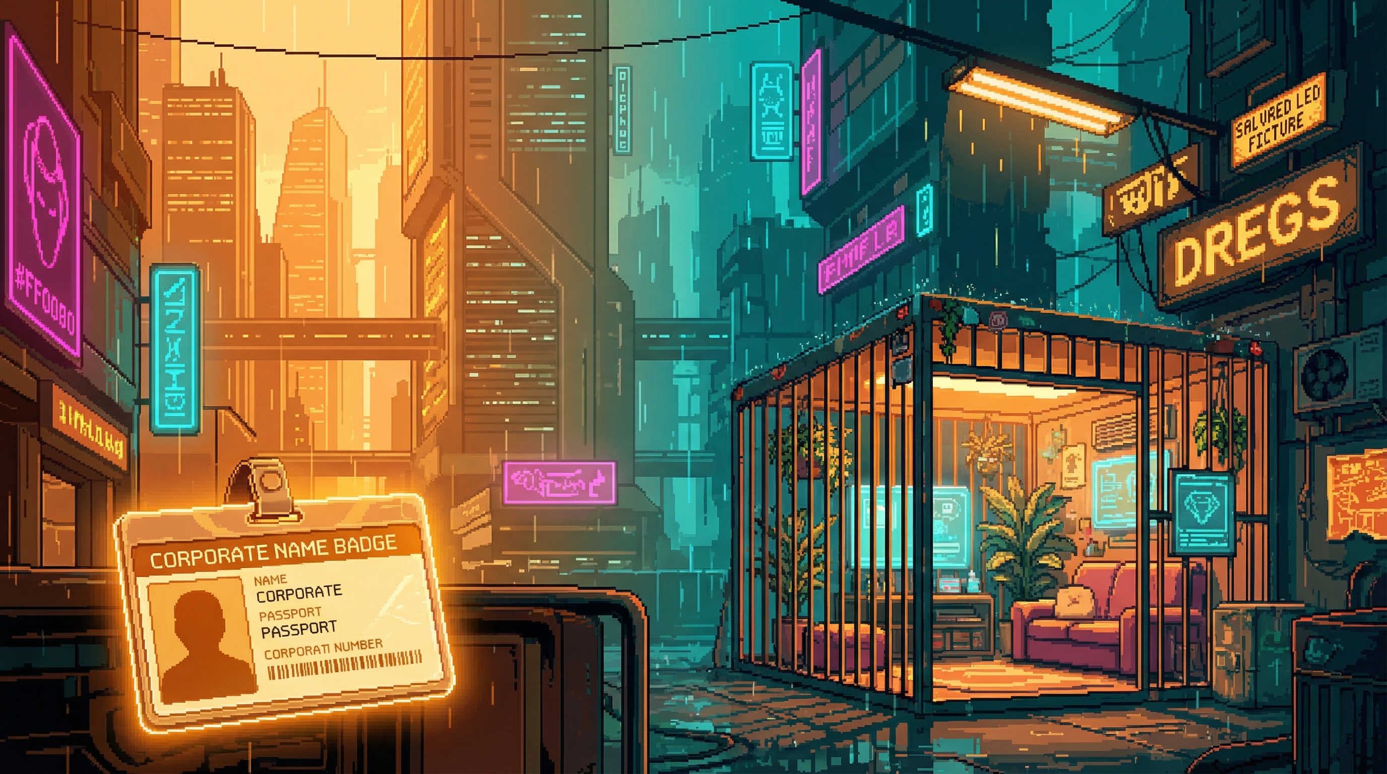 Between the corporate districts and the Dregs, there is a space that belongs to neither. The Transition Corridor is not a designed space.