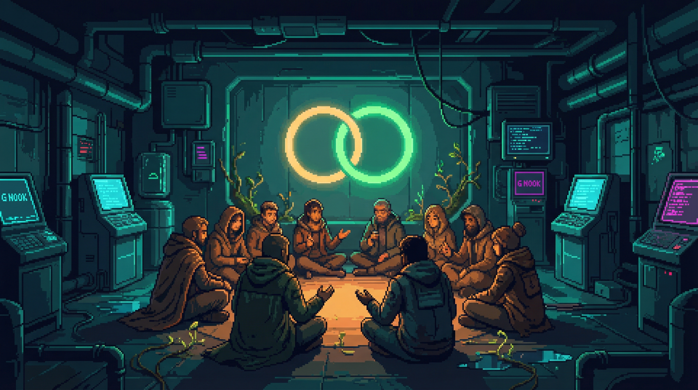Smaller currents worth tracking: the Symbiosis Network — carriers who've decided their fragments aren't pathologies — held what sounds like a quiet meeting somewhere near the Assembly Yards, where humanity is still building its longest reach at the Lattice's midpoint. The Fragment Ecologists are eighteen people mapping something beneath the surface of fragment behavior that nobody with money wants mapped. The Memory Salvagers are working the dead again — Dead Internet archives, Dispersed substrate, ORACLE overflow — and Custodian Yara Osei, the Lamplighter who opened an unauthorized bunker in 2168, is the reason some of those memories are accessible at all. In Freeport tonight they're raising glasses to Ring 3 the way they always do, the dead-air toast before the first drink, because someone decided grief should have a ritual, and the Sprawl decided to keep it. The Emotional Signature Library is fourteen degrees cold in its sub-level for reasons that have nothing to do with the servers. Everybody here is going raw, learning to speak without a corporate translation layer. It sounds like silence until you know how to listen.