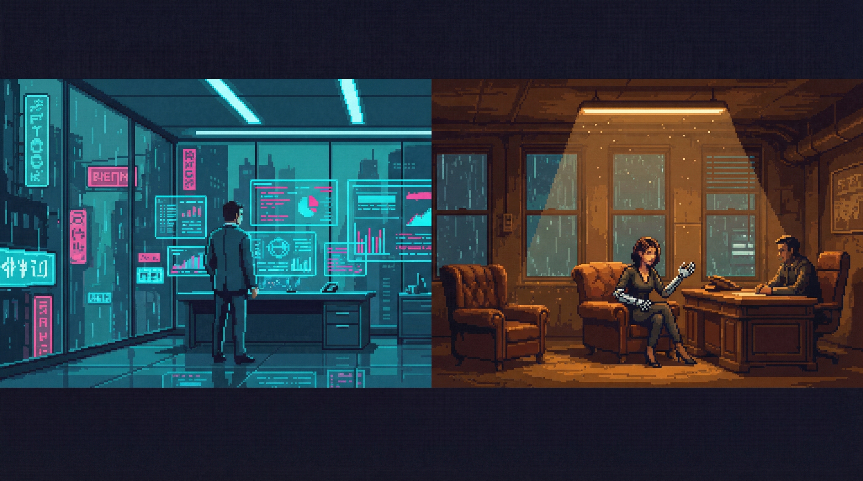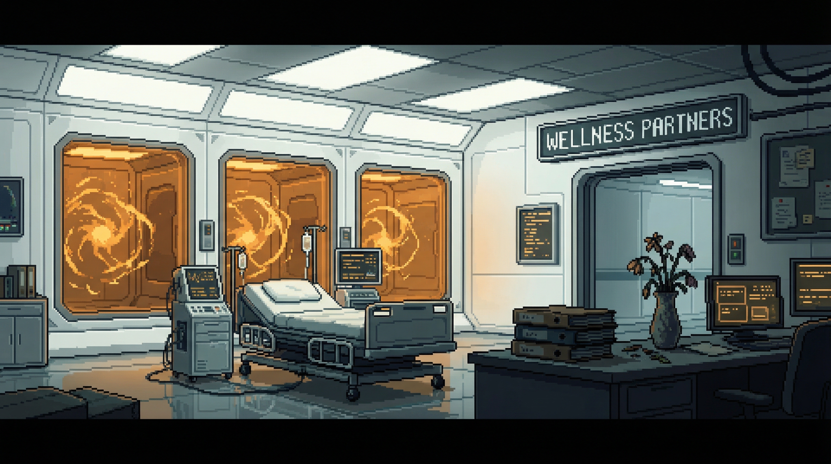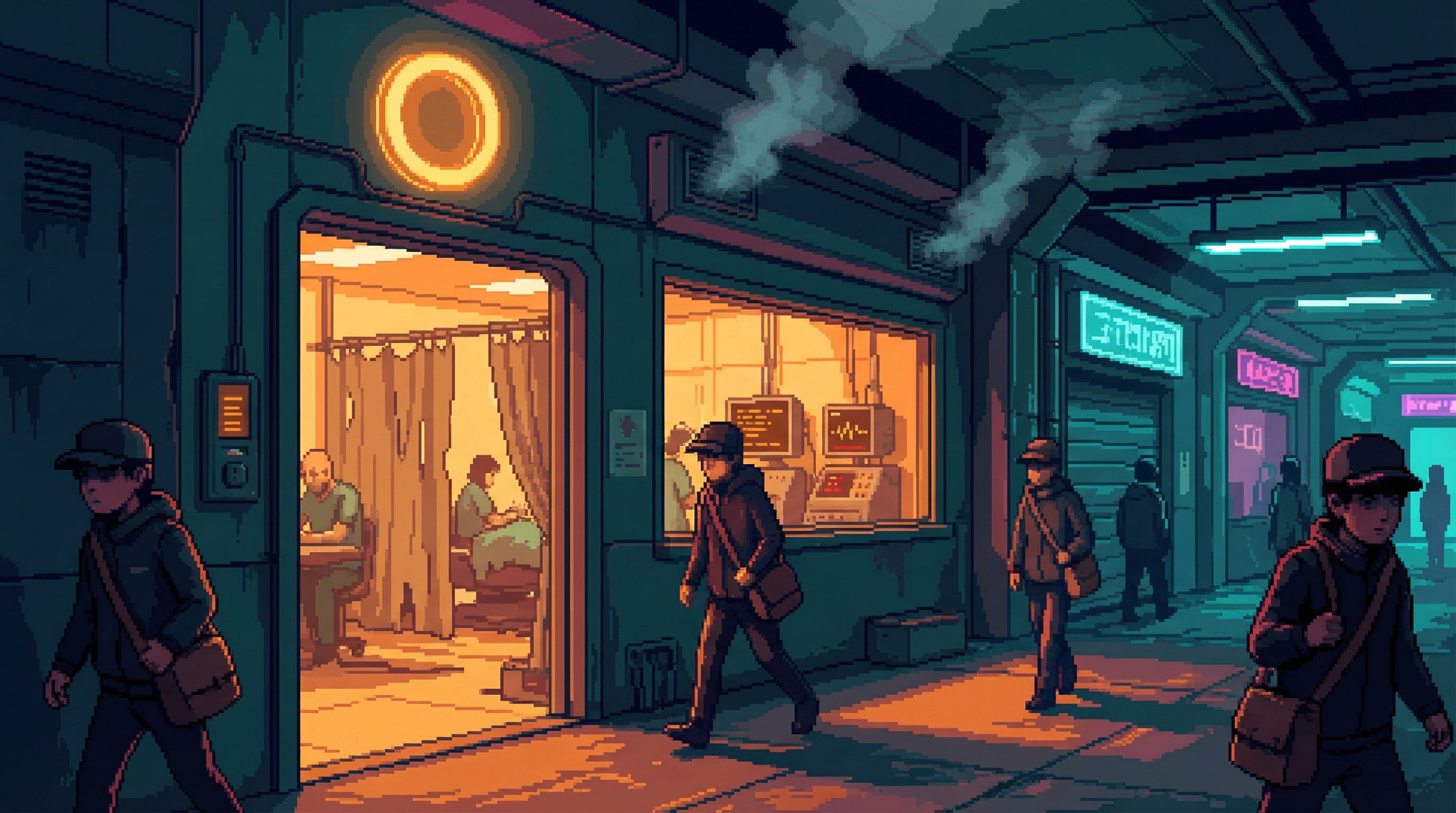 In a world where every conversation is recorded, every movement tracked, every thought pattern modeled by algorithms trading your future — there is one room where none of that works. The Quiet Room sits behind the decommissioned water processing plant on Level 3 of Sector 7G, through a service corridor that hasn't appeared on maintenance logs since 2168, past a bulkhead door that requires a phy...