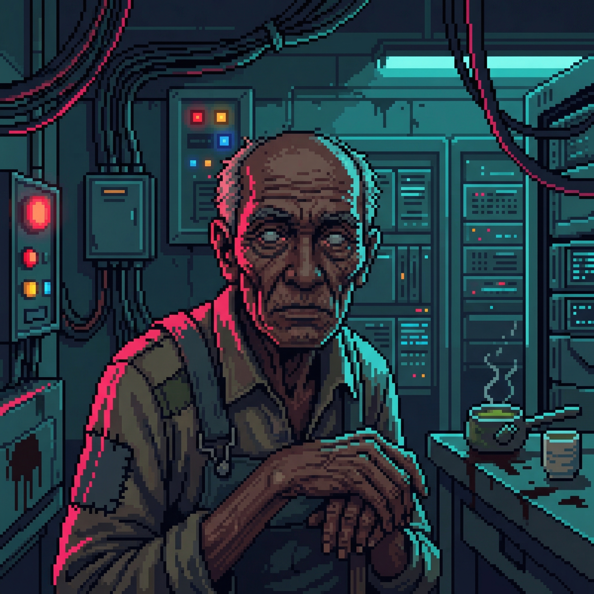 A digital ghost in terminal decline, trapped in an abandoned ORACLE data center. What happens when transcendence goes wrong and maintenance is forgotten.