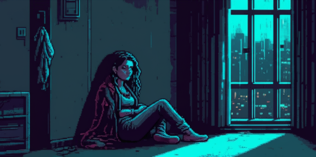 Thirty-two stories up. Too tired to move. Too wired to sleep. GG sat on the edge, legs dangling over Sector 7G.